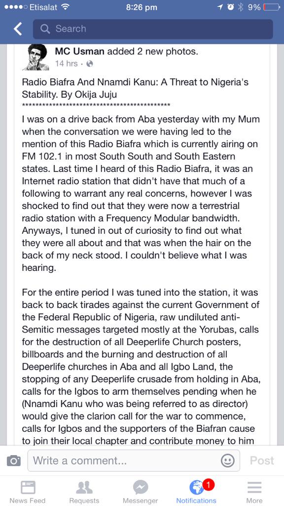 Radio Biafra Is Broadcasting Hate Message To Nigerians – Read below!
